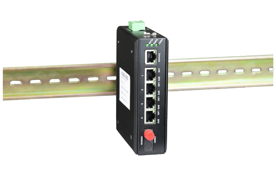 This series of products is the conversion between the industrial grade 4 port 10/100/1000base-T twisted pair and 1000base-X fiber media or extended network transmission fiber conversion optical fiber network is mainly used for long-distance transmission (20/40/60/80/100 km). This product provides 1 Gigabit ports 4 Gigabit Ethernet port. The utility model has the advantages of perfect alarm function stable and reliable work low power consumption high integration degree and small size.