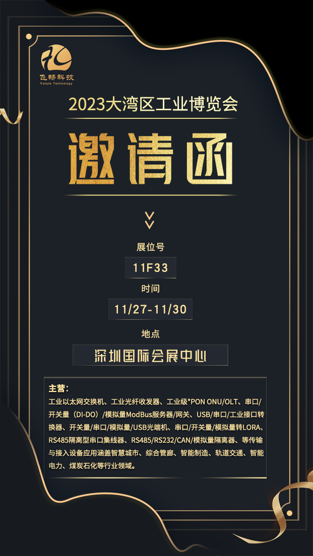 我代表杭州飛暢科技有限公司,誠(chéng)摯邀請(qǐng)您參觀我們?cè)?023年大灣區(qū)工業(yè)博覽會(huì)上的展臺(tái)(展臺(tái)號(hào):11FF33)。