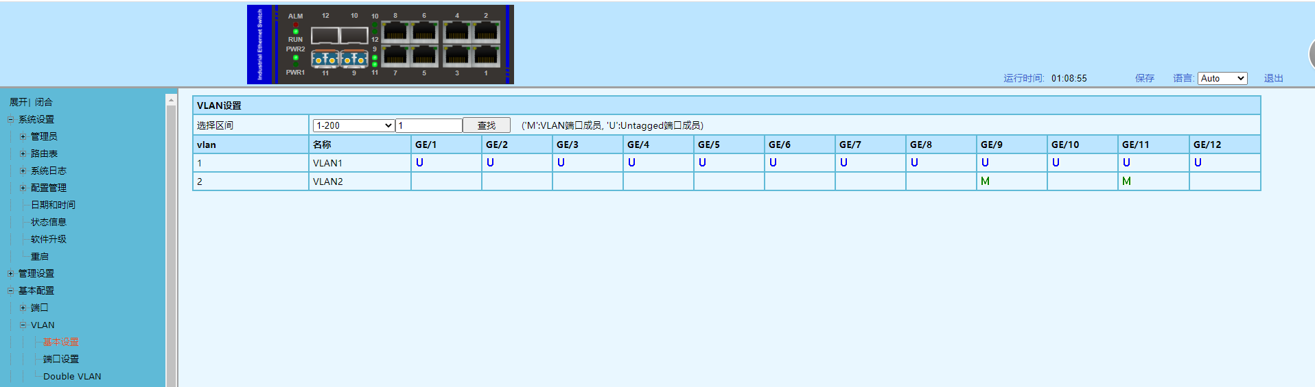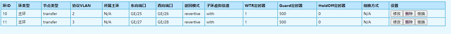 3、設(shè)置好匯聚節(jié)點(diǎn)設(shè)備后再配置兩個環(huán)內(nèi)的設(shè)備VLAN(此步驟可以和改IP一起操作),修改后保存。