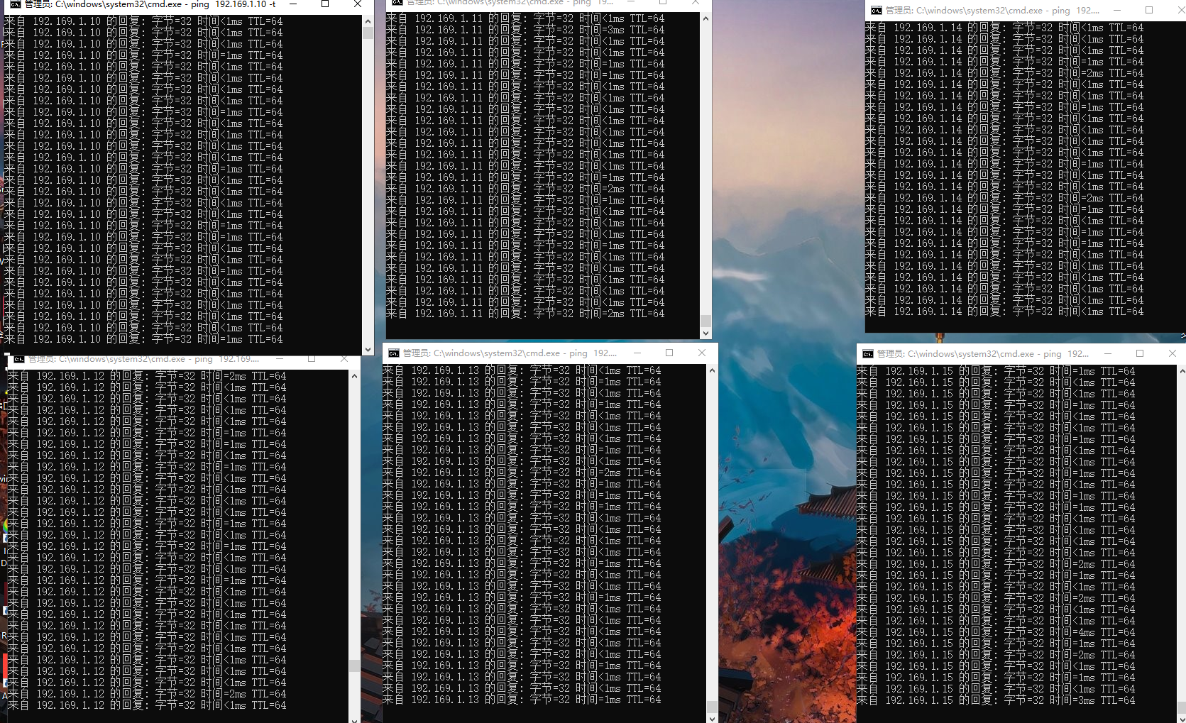 首先確定每臺設(shè)備需要修改的預(yù)設(shè)IP(本次測試預(yù)設(shè)IP為192.169.1.10 - 15;