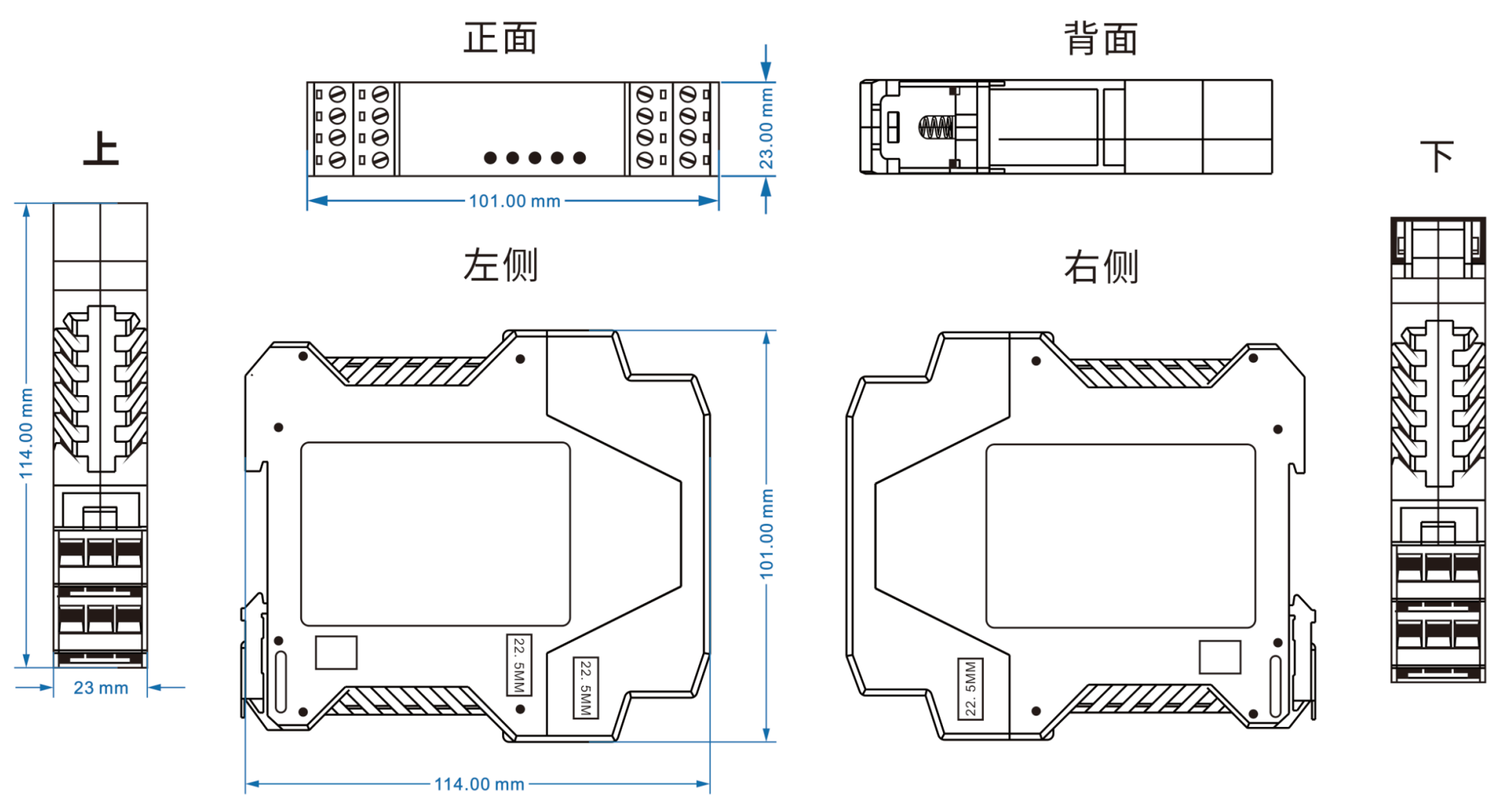 電源輸入DC5-70V ,功耗<1W 過載保護:支持;反接保護:支持; 接入端子:4芯5.08mm間距端子 |